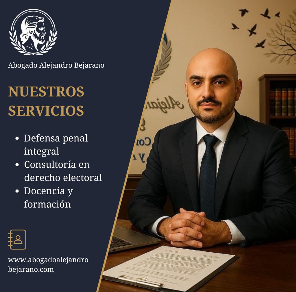 Alejandro Bejarano García es un abogado colombiano con sólida experiencia en representación penal y penal militar, consultoría en derecho electoral y asesoría en trabajos de grado en Derecho, Ciencias Militares y áreas afines.